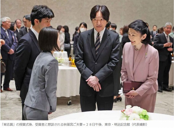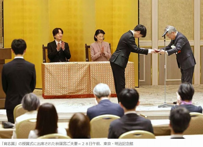 「日本学術振興会育志賞」授賞式は秋篠宮さまご夫妻らしいご公務でしたね。