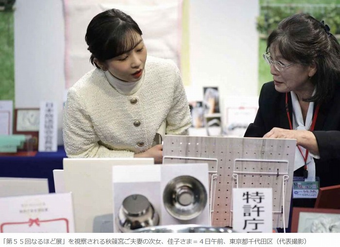 説明役の担当者によると、佳子さまは「生活のちょっとのことを、皆さんよく考えていらっしゃいますね」と感想を伝えられたという。展示は9日まで、東京交通会館で開催。佳子さまは昨年も同展を視察されている。記事出典 産経新聞 https://www.sankei.com/article/20240304-6OQEZ4IJV5KINBEORC3K6TWDYY/