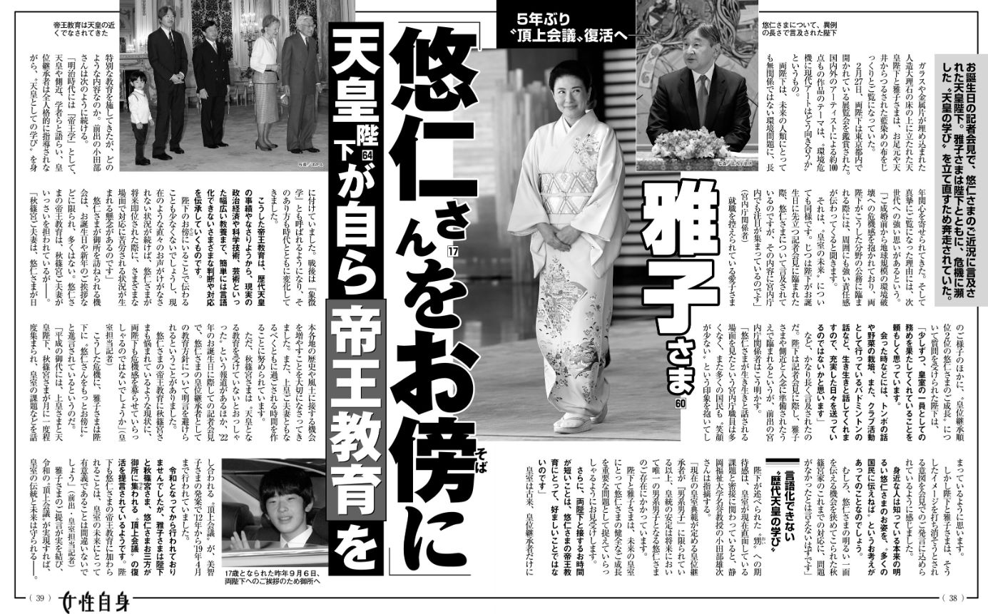 3月19日号に 雅子さま 悠仁さんをお傍に天皇陛下が自ら帝王教育を。