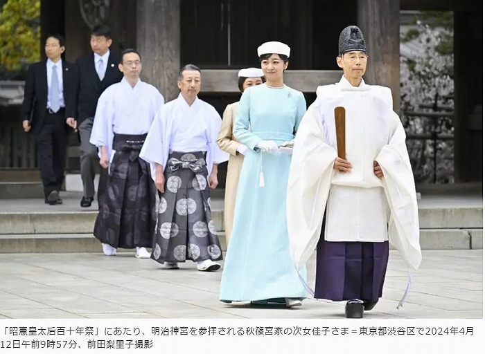 佳子さま、明治神宮参拝 関係者らに笑顔で会釈 昭憲皇太后110年祭(2024年4月12日)