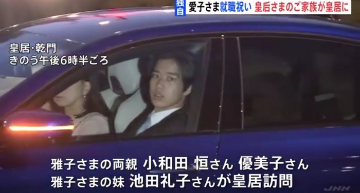 上皇夫妻を訪問する前日の10日は、雅子さまの両親と妹らが皇居を訪問し午後6時半過ぎからおよそ2時間滞在しお祝いの夕食会をしたそうです。