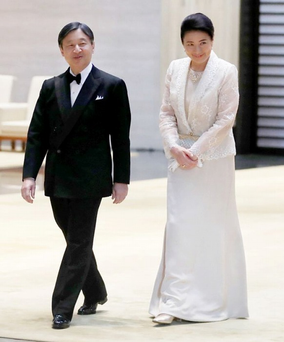 今年の雅子さまはトランプ大統領夫妻来日による晩餐会で着たレースの上着付きのロングドレスでした。