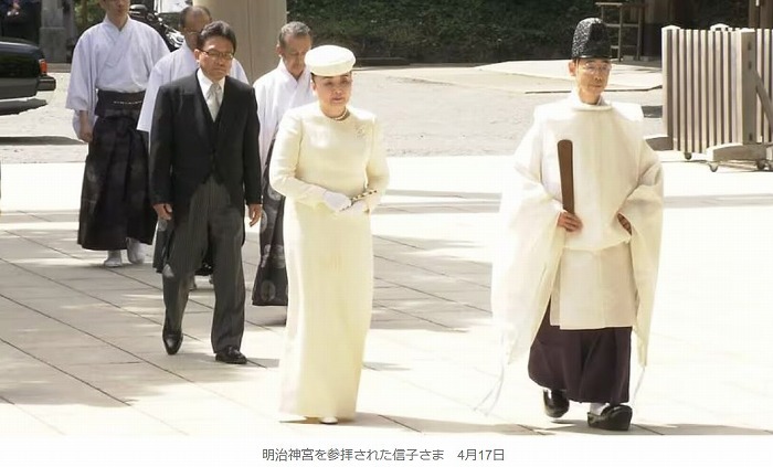 寬仁親王妃信子さまと、高円宮妃・久子さまと長女の承子さまは17日、明治天皇の后・昭憲皇太后の110年祭にあたり、明治神宮を参拝された。17日午前、信子さまは明治天皇と昭憲皇太后が祀られている東京・渋谷区の明治神宮に到着し、参拝された。