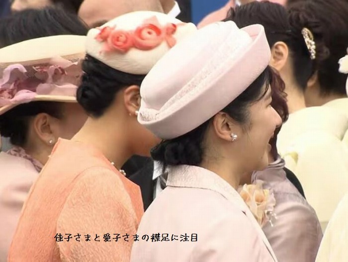 前回書き損ねたのですが、おそらく今回は洋装、時間通りには始まらない、も想定内でした。和装ですと足元の問題があると思いました。愛子さんも卒業式の会見の時は、舗装された平地を数歩だけ歩いただけです。テレビ局も始まるまでの間の埋め合わせに苦慮していました。