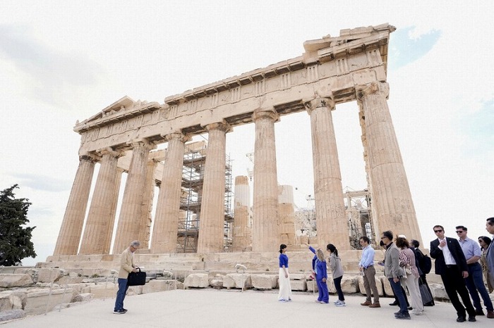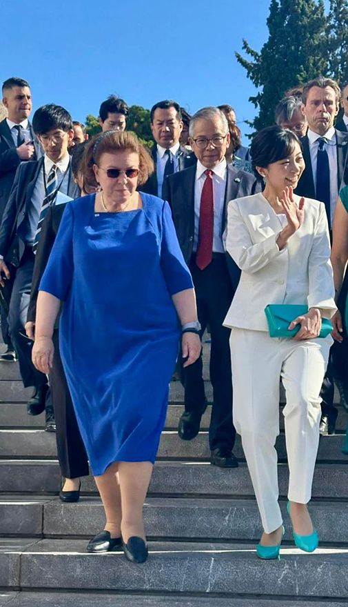 佳子さま、ギリシャ国旗の色合いファッションでパルテノン神殿を視察…1時間半かけて熱心に質問