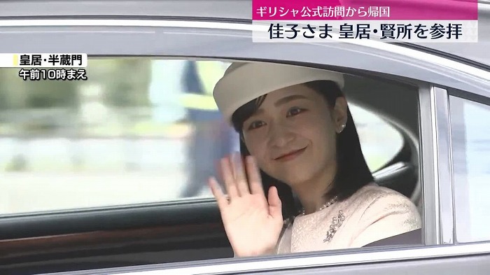 佳子さまがギリシャ訪問終えて皇居・賢所参拝 淡いピンク色の装いで笑顔で手を振られる 5日には帰国後初公務へ