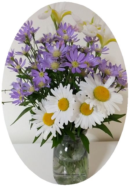 先月の写真、家の周りに咲いていた花(みやこ忘れ、水仙、マーガレット)を摘んで花瓶に飾りました。花も高くなりましたね。