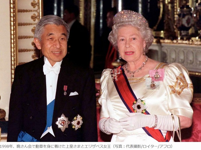 で、未だに病気療養中と書かれ、主治医で精神科医の大野裕氏も随行と書かれているのに、イギリスまで行ってチャールズ国王主催の晩餐会にも出るんですよね、なのに答礼晩餐会、あるいは答礼コンサートとか、そういう事は無しで(笑)天皇皇后夫妻、大したものです。