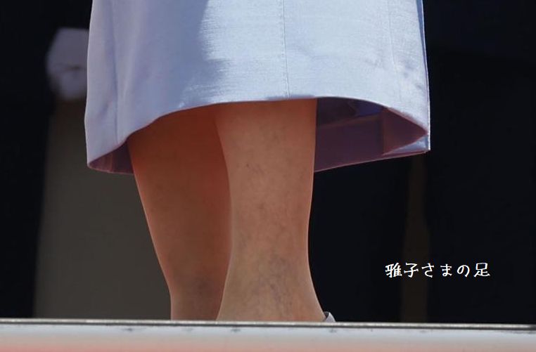 私も血管が目立つ足なので雅子さまの脛部分は気になりませんでしたが、足首当たりの打ち身の様な青々しさ(写真映りのせい?)が気になりました。