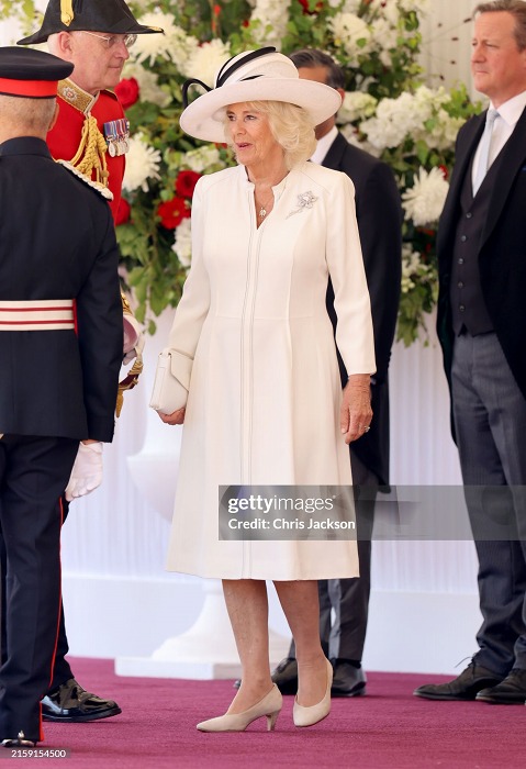 シンプルだけど綺麗なラインとお洒落な帽子のカミラ王妃と比べたら・・・あれでも精一杯のお洒落なのでしょうけど。