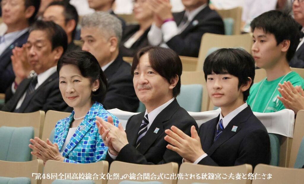 宮内庁によると、ご夫妻と悠仁さまの3人で地方公務に臨むのは初めて。高校3年の悠仁さまは夏休み中で、同年代の高校生と交流できる機会を大切に思い、出席を決めたという。秋篠宮さまは開会式で、先週の大雨で被害を受けた東北地方からの参加者にお見舞いの言葉を述べ、能登半島地震についても「大きな被害に心を痛めております」と話した。その上で「活動の成果を存分に披露され、全国へ発信していかれることを期待しております」と語った。