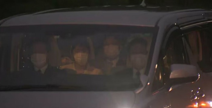三人で出掛ける時はいつものように後部座席が定位置になった徳仁天皇。