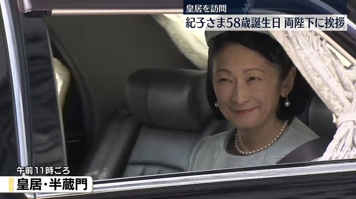 紀子さまは、11日午前11時ごろ、水色のドレスと帽子姿で皇居・半蔵門に入り、車の窓を開けて報道陣に笑顔で会釈をされました。11日の訪問は、58歳の誕生日の節目に天皇皇后両陛下に挨拶されるためです。