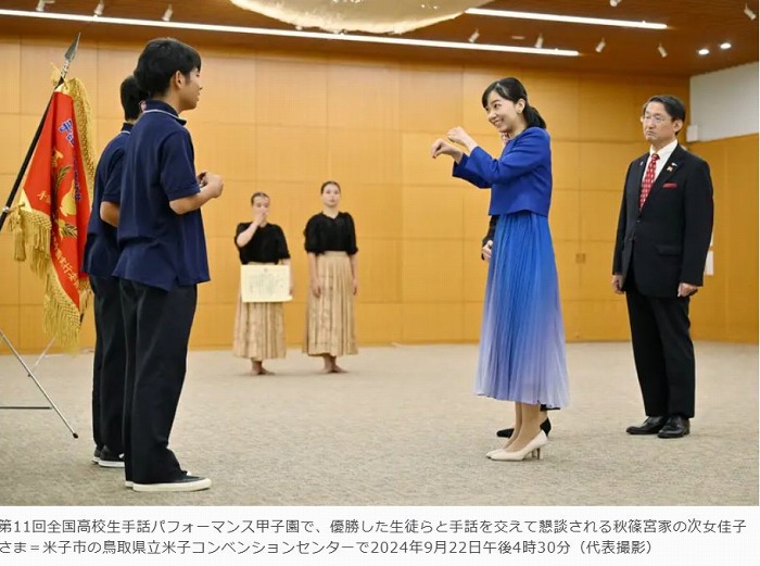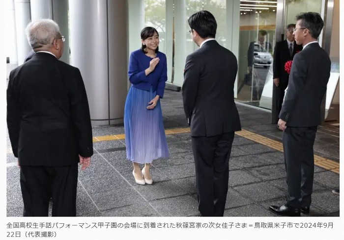 佳子さまは今年も鳥取県で開催される「全国高校生手話パフォーマンス甲子園」に出席する為、鳥取県を訪問されました。