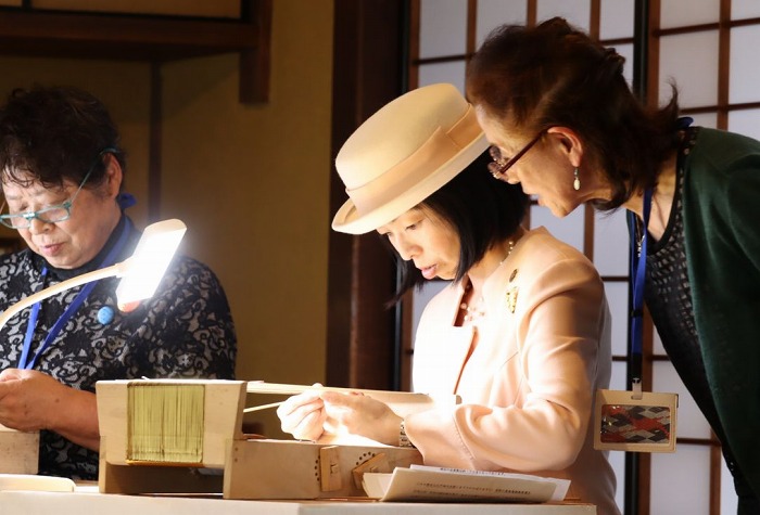 国民スポーツ大会(国スポ)に合わせ来訪されている彬子女王殿下は、10月10日(木)佐賀市歴史民俗館(旧福田家)にて、佐賀県指定伝統的地場産品である、手織り佐賀錦を御視察・御体験されました