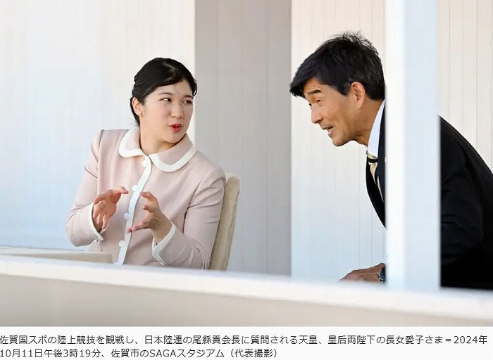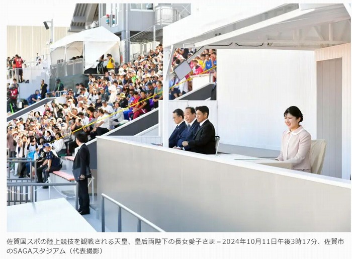 11日は佐賀市のスタジアムで、成年男子やり投げの決勝などをご観戦。愛子さまは説明者の話を聞きながら、熱心にご覧になった。会場を出る際には「テレビで感じることができない足音まで聞こえて感激しました」と感想を伝えられた。
