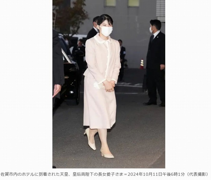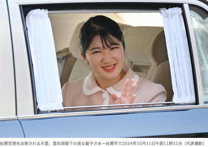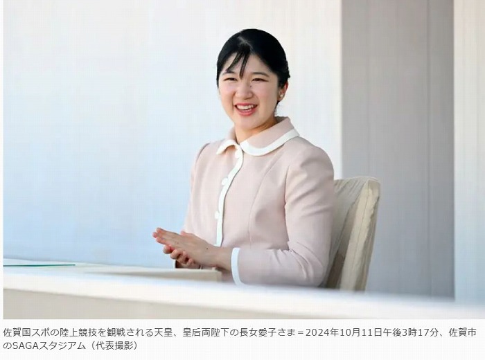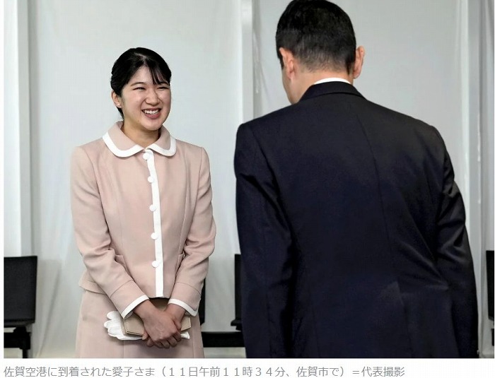 天皇、皇后両陛下の長女、敬宮(としのみや)愛子さまは11日、第78回国民スポーツ大会(旧国民体育大会)視察などのため、佐賀県に入られた。1泊2日の日程で、12日まで滞在される。愛子さまの単独地方ご公務は初めて。