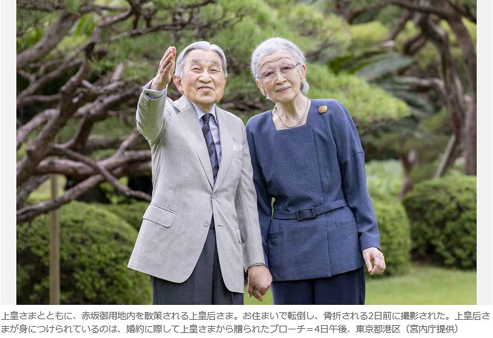 しかしこれは生誕の年齢、健康寿命から見たら限界です。卒寿ですのでこれを機会に表舞台からは卒業されることを希望します。既に引退された御身、私的に静養鑑賞等されるのはよろしいかと思いますが、それを報道にまで至らなくても良いかと存じます。歴代の方々のように、静かにお過ごしいただきたいですね。また国民の理解を求めるには、現状をきちんと正しくお知らせいただく事を望みます。