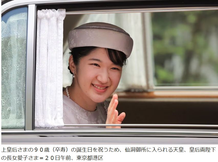 上皇后さまが90歳の卒寿を迎えられた20日、天皇、皇后両陛下は上皇ご夫妻にお祝いのあいさつをするため、赤坂御用地にある仙洞御所(東京都港区)を訪問された。両陛下の長女、敬宮愛子さまも足を運ばれた。