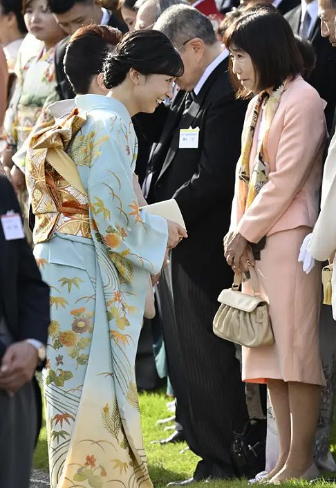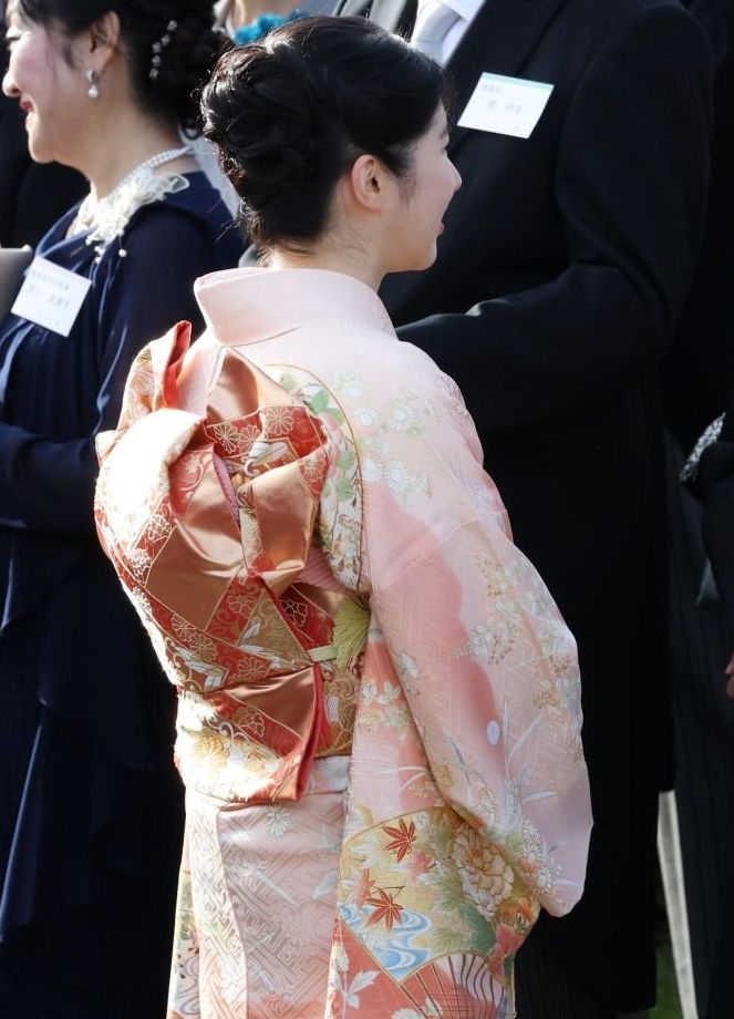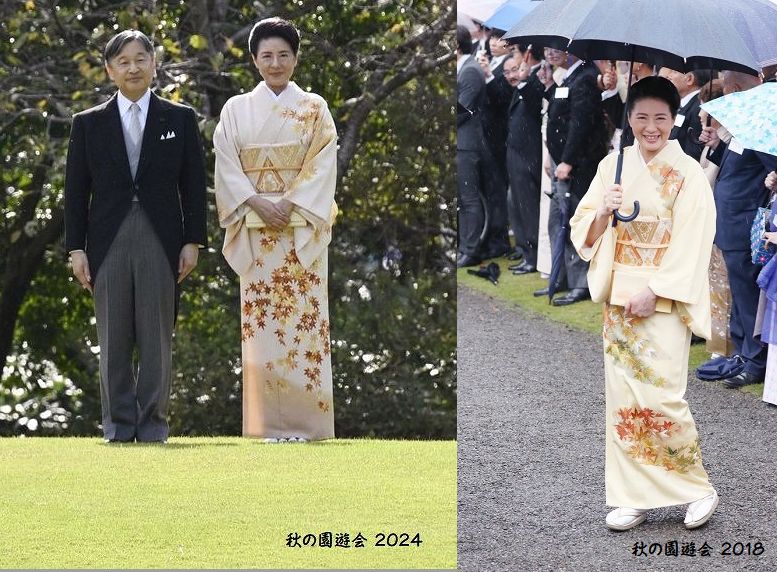 和装の園遊会、見応えがあります。今回の注目株は愛子さんかな。特訓の成果ありでした。きちんと練習通りの行動でした。(誰でも練習はあると思います。)皇嗣妃殿下と佳子内親王の間でしたので、より一層がっちり感があり体格的にお着物が映えました。ただ所作は今後の課題ですね。佳子内親王に話しかけ、常陸宮妃殿下の様子伺いの場面はあってはならないです。話しかけなければ落ち着かないのでしょう。でも駄目です。あとお着物でも結構大股歩きでした。これは癖ですね。私が一番に感じたことは帯、おそらく作り帯を着用かと思いました。佳子内親王と見比べると、整いすぎです。ネクタイでも作りネクタイがありますので、若い方や初めての方には良いかもしれません。佳子内親王と愛子さんのお着物コラボに目を楽しませていただきました。皇嗣妃殿下のお着物も素敵でした。
