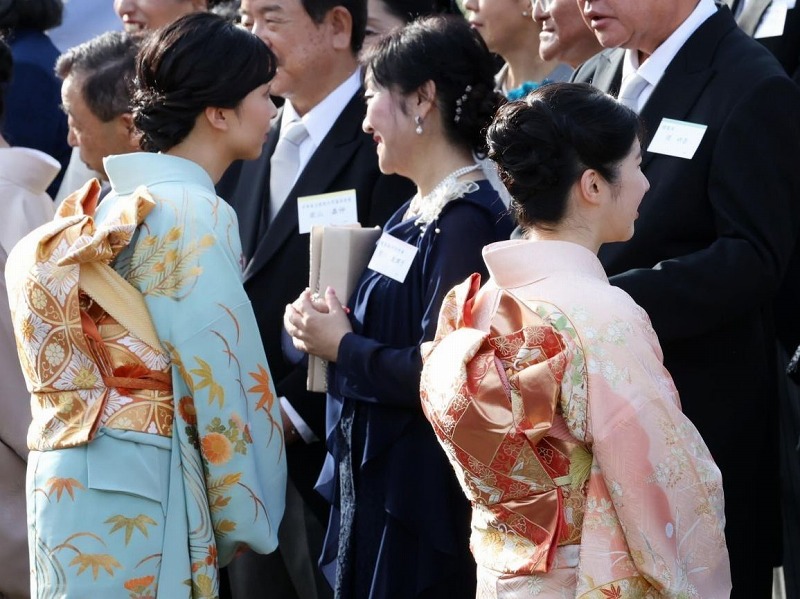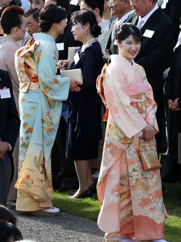 佳子さまはもう新しく振袖を誂える事は止めたのでしょうか。佳子さま、眞子さんにもピンク系の振袖は数枚あるのですが、今回も眞子さんのお下がりの着物でした。愛子さまがピンク系だし初の和装での園遊会デビューで気を使われて水色の振袖にしたのでしょうね。それに年齢的にもピンク系はちょっと若いかもね。眞子さんの振袖は他にもあるので、お下がりを着るなら水色のこの着物だけでなく他の着物も着て欲しいです。