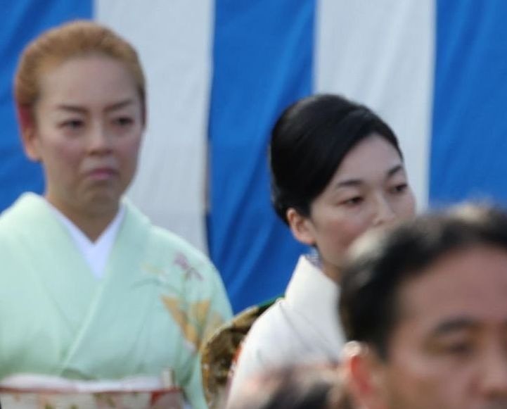 招待者と対面するまでの瑶子さまの仏頂面と凄い茶髪に驚きました。ブータレでいるのか、どーでもよくなっているのか。彬子さまの着物姿は真正面に見るとなで肩でいかにも着物が似合っているのですが、横から見ると首筋は見えない、ふくら雀にした帯が上にあがっているし、愛子さまと比べても、着物スタイルでは愛子さまに軍配が上がります。
