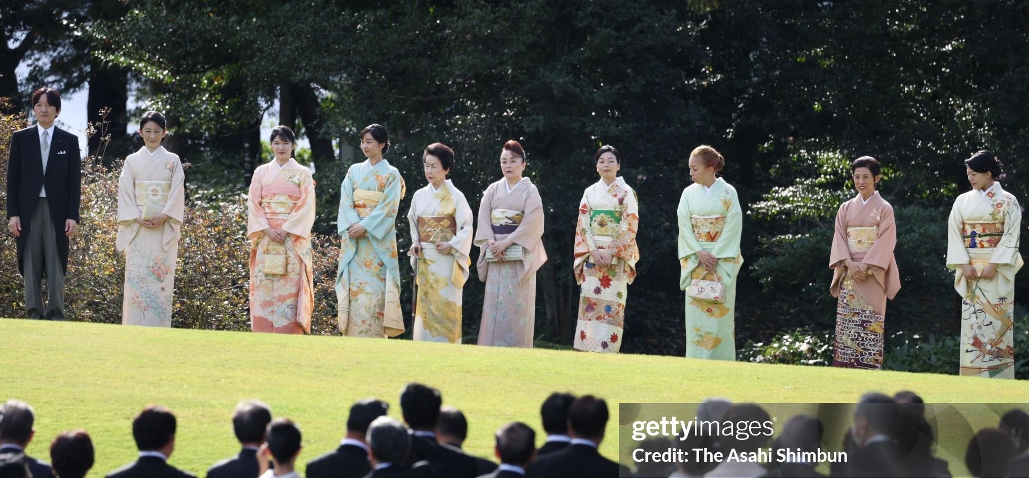 秋日和のなか見事な着物で勢ぞろいされた皇族の皆様。日本の伝統だとつくづく思います。レンズ越しと実際に見るのとではかなり違うのでしょうけれど、屋外、特にお天気の良いときに映える色目とか図柄というのはあるのでしょうね。若い女性は、若さの力でどんな場所でも生きいきしますが。
