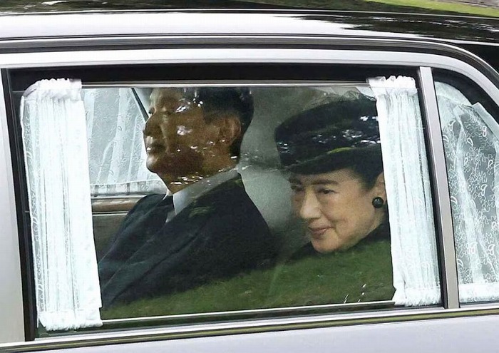 天皇、皇后両陛下は15日、三笠宮妃百合子さまのご遺体が安置された赤坂御用地(東京都港区)内の三笠宮邸を弔問された。皇居を車で出発した両陛下は午後0時10分ごろ、巽門から御用地内に入った。天皇陛下は黒のスーツ姿、皇后さまは黒の服と帽子を着用。弔問を終え、約15分後に南門から出た。