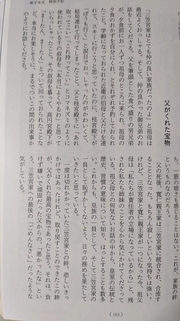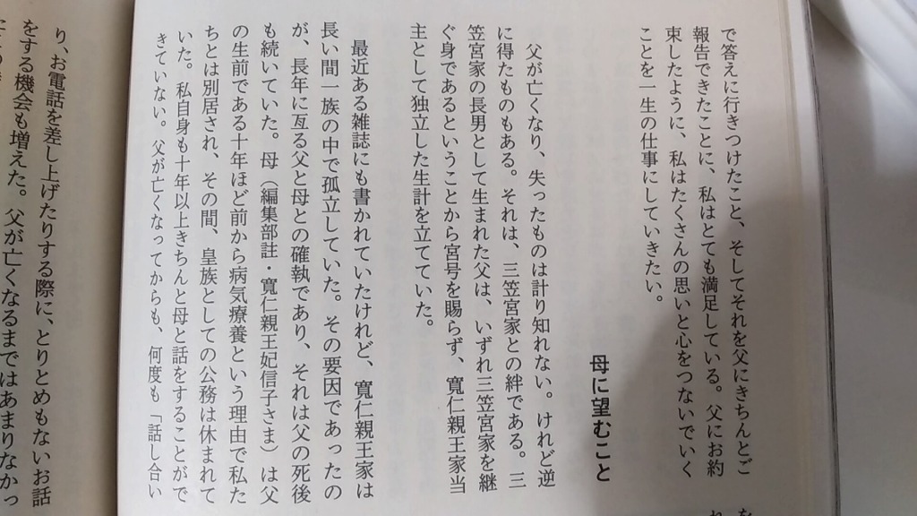 彬子さまの手記はまだ30代の若い自分が三笠宮家、他の皇族方の
