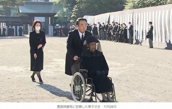 11月26日三笠宮妃百合子さまの本葬に当たる「斂葬の儀」が豊島岡墓地で営まれました。日テレNEWSの約40分の動画を飛ばし飛ばしに見たのですが、何と言っても注目は悠仁さまでした。