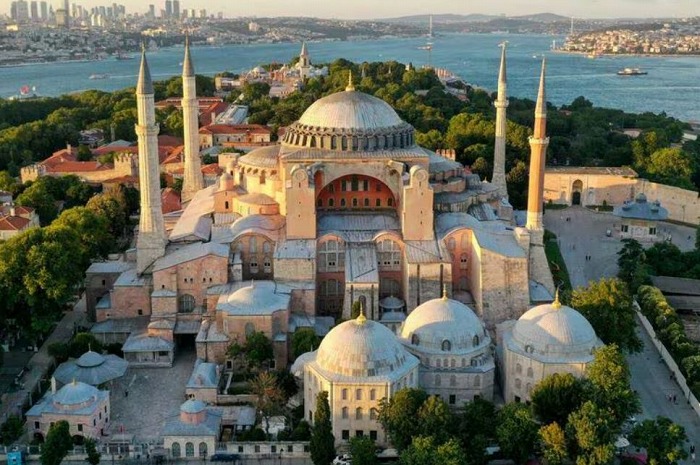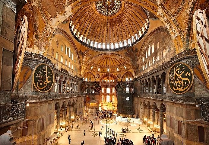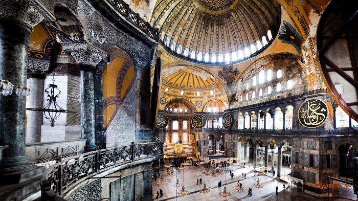 6世紀のビザンチン教会としてコンスタンチヌス大帝によって建造され、完成後、聖堂に入場した皇帝は”私はソロモンを越えた”と叫んだと言われています。ニカの暴動で焼失後537年に再建され、長年ギリシャ正教の東の総本山としてビザンチン帝国滅亡まで活動しました。1453年オスマン トルコ征服後、モスクとして変身され、内部のモザイク画は漆喰で塗りつぶされました。1934年博物館として一般公開されるようになりました。