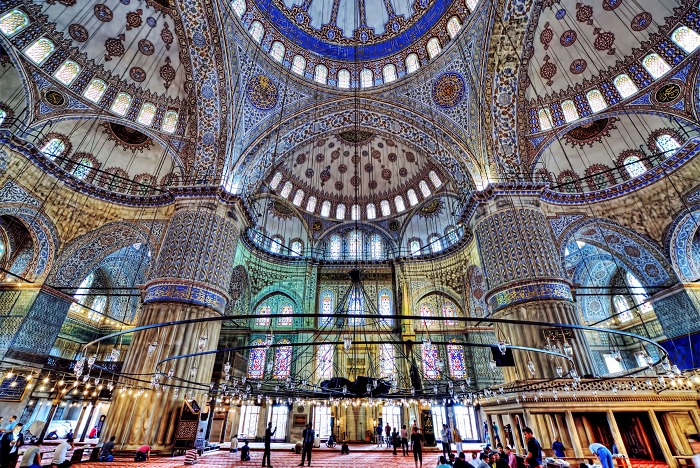 イスタンブールの象徴とも言われるブルーモスクは6本のミナレット(小塔)を持つ異例のモスクでです。また、1043枚のイズニックタイルが使用されていることでも有名です。