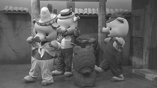 いつも3人一緒。昔、NHKの子供番組で放送していた、お母さんと一緒のブーフーウー、3匹の子豚が脳裏をかすめました。知らない方が多いかと思います(^^;)今は絵本が沢山出版されていました。