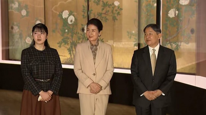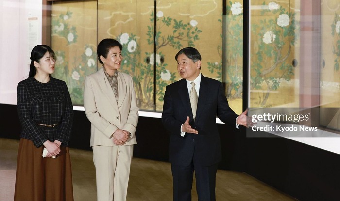 ご一家は、画家・狩野山楽の代表作で、長さおよそ22メートルの襖絵「牡丹図」を鑑賞し、陛下は大覚寺と狩野山楽の関係について説明者に熱心に質問されていました。また、大学で日本文学を学んだ愛子さまは、嵯峨天皇を描いた絵画について「装束の特徴というのはありますか」と尋ね、ご一家は時折、作品を覗き込むように興味深く鑑賞されていました。記事出典 TBSNEWS