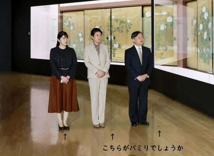 天皇皇后夫妻は愛子さまを目立つように、存在を忘れられないようにとの配慮でしょうが、説明を受ける、展示された作品を鑑賞するのにこの3人の立ち位置が不自然だと、本人達が気が付かないのが憐れに見える。私はいつもバミリを探してしまうし・・・(;’∀’)