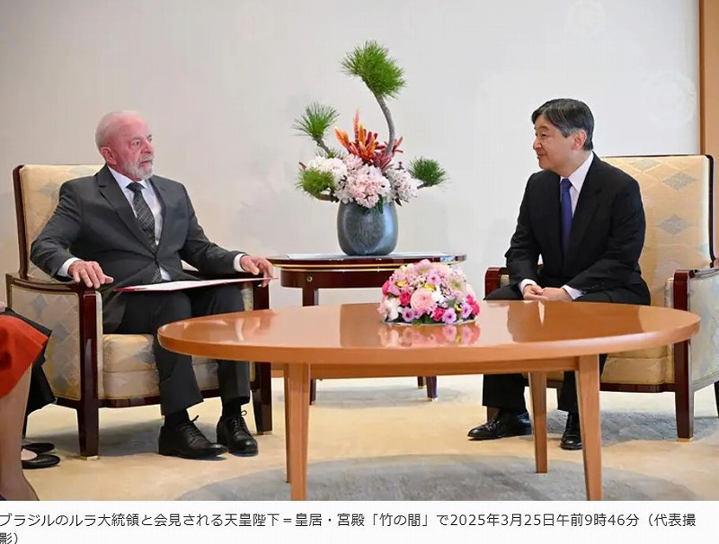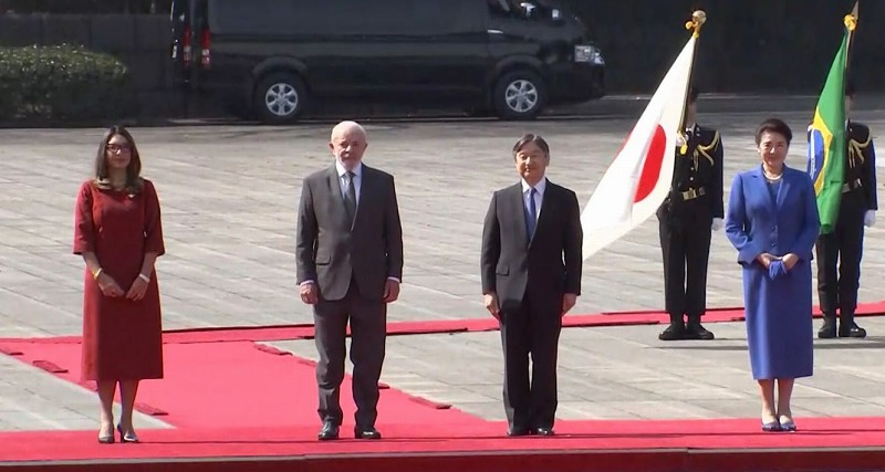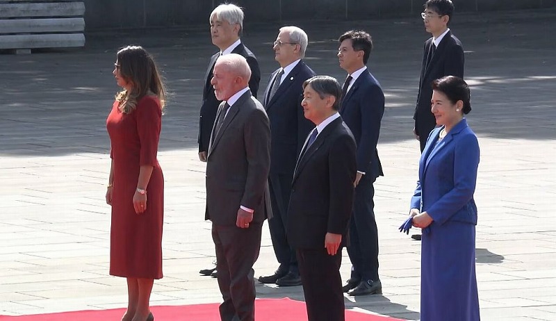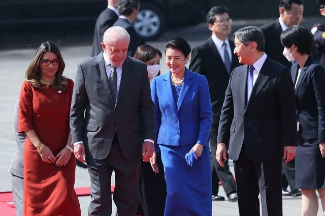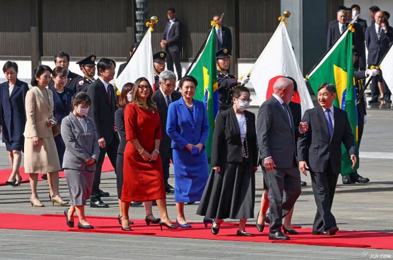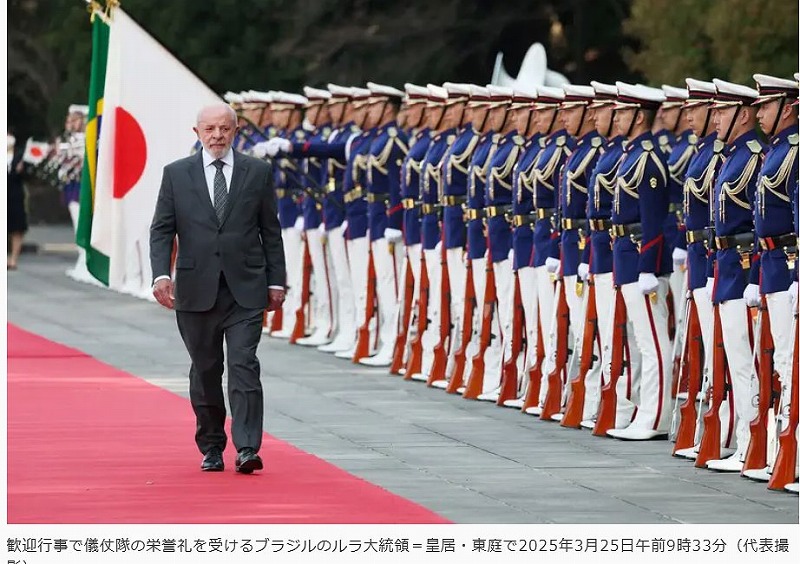 歓迎行事では、ブラジルと日本の国歌が演奏された後、ルラ大統領が自衛隊の儀仗(ぎじょう)隊の栄誉礼を受け、東庭を歩いて巡閲した。行事には秋篠宮ご夫妻や石破茂首相らも出席した。