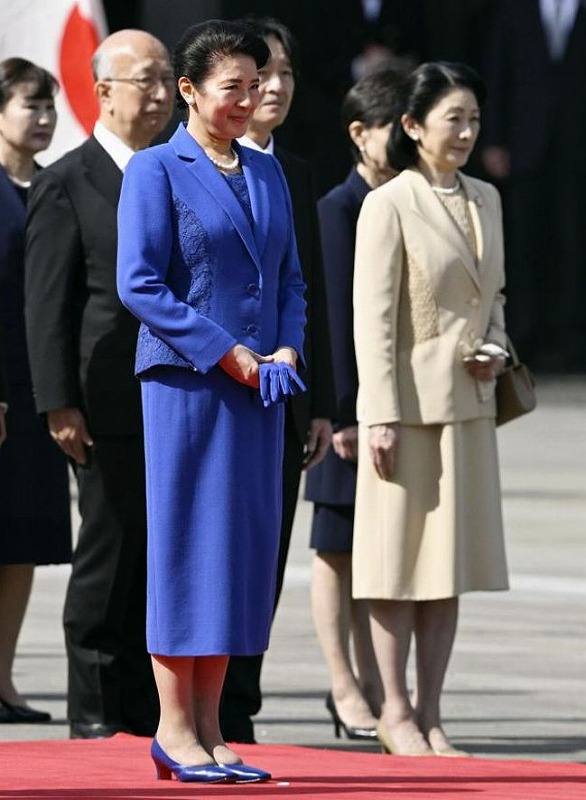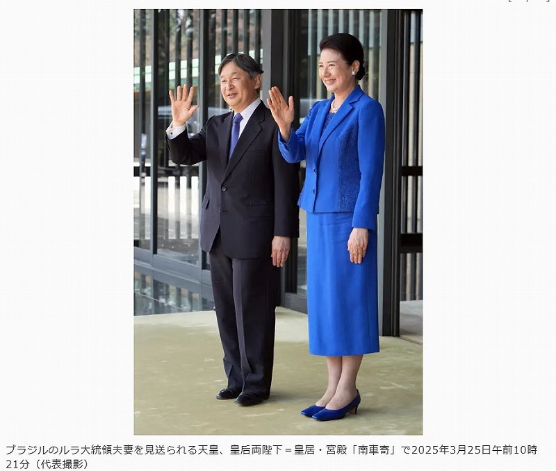 とはいえ、珍しく早起きをしたからか?ブラジル大統領夫妻を宮殿車寄せでお迎えした時は、スーツと同じ生地で作られたと思われる、青いクラッチバックと青の手袋をしっかり持っていたのに、あれれれれ~~歓迎儀式に向かう時の画像、映像を見ると、クラッチバックを持たずに手袋だけ持って歩いて出てきました。