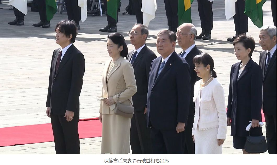 他に石破総理夫人が着ていたスーツ。この方は着る物に無頓着なのか?シャネル風のスーツの袖が長く袖丈直し無しでしょうね。パールのネックレスを着けたもののスーツのネックラインが大きく、例えば9号サイズなのに11号か13号を着ているような状態で、故安倍元総理夫人の昭恵さん、岸田元総理夫人の裕子さんと比べると見劣りし過ぎです!