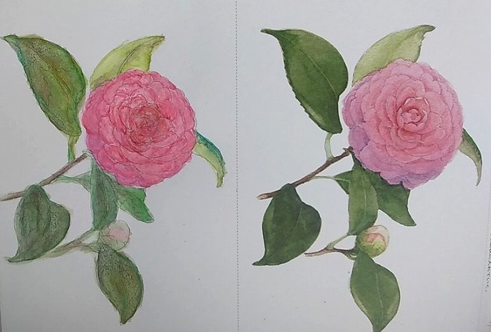 一番上の画像と直ぐ上の画像はダイソーから買った葉書サイズの大人の塗り絵です。欲しい物があって買い物に行った時に序でに2冊買い久しぶりに水彩色鉛筆と水筆で塗ってみました。もっとコツを掴んで上手く塗りたいし、また水彩画、絵手紙も書きたいな~と思って道具を出しました。youtubeが先生です(笑)