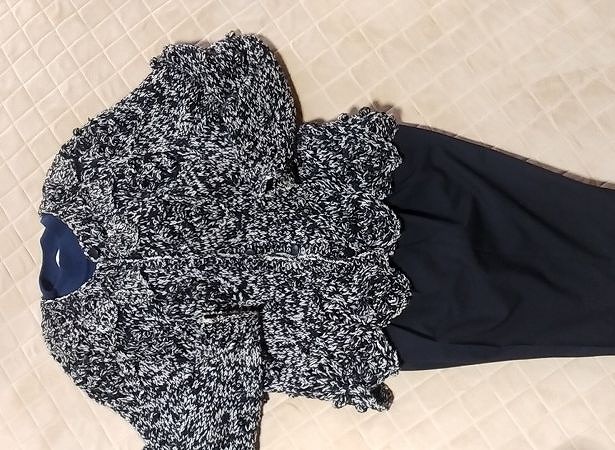 先週の冷えた日のミサに着て行った服。20数年前にネットから買ったカネコイサオの重たいけど暖かいカーディガン、中には黒の薄いニットを着たかったけど無かったので紺色のニット。下は黒のテーパードパンツです。 最近、昔々に買ったワンピース、スカートを履いて行く事もあります。捨てた~と思っていても意外とまだあるのでもったいないので着ています(^^)
