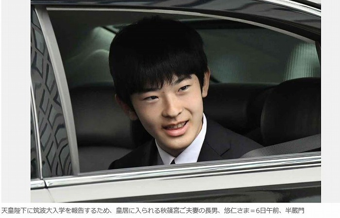 昨日4月6日の午前中、悠仁さまが徳仁天皇に大学入学に挨拶するため、御所を訪問されました。