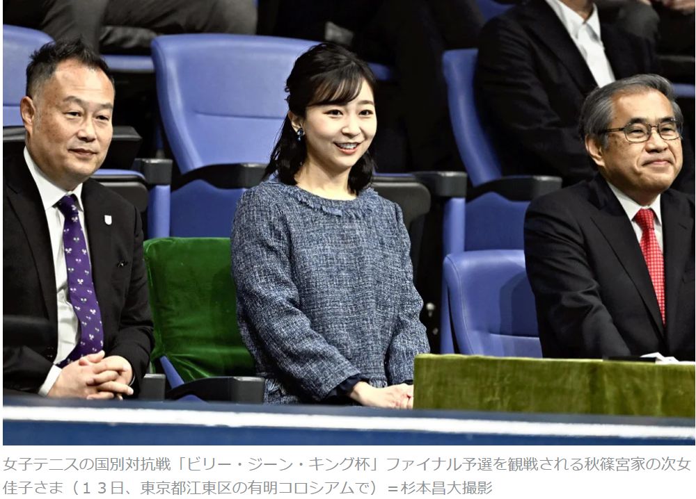 大阪万博開会式で雅子さまのトンデモなピンクのスーツを見た後だからか、佳子さまが女子テニスのW杯「ビリー・ジーン・キング・カップ」観戦、ただこれだけの報道でも清々しい気分になりました。痞えていた餅がすーーっと下がったような気持ち(^^)