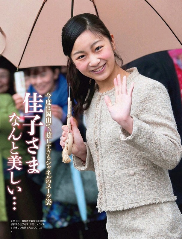 下の画像は約10年前の佳子さま。まだ眞子さんと小室圭氏報道が出る前で週刊誌も素直に「佳子さま なんと美しい」のタイトルです。今はそれが愛子さまに替わってしまいました。さすがに「なんと美しい」との表現は無さそうですが。 22日の園遊会では佳子さまと愛子さまの2人で回る事になりました、残念です。親しくしている高円宮家と一緒に回ればいいのに・・・。