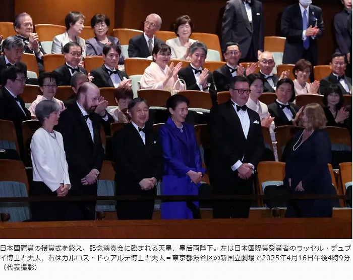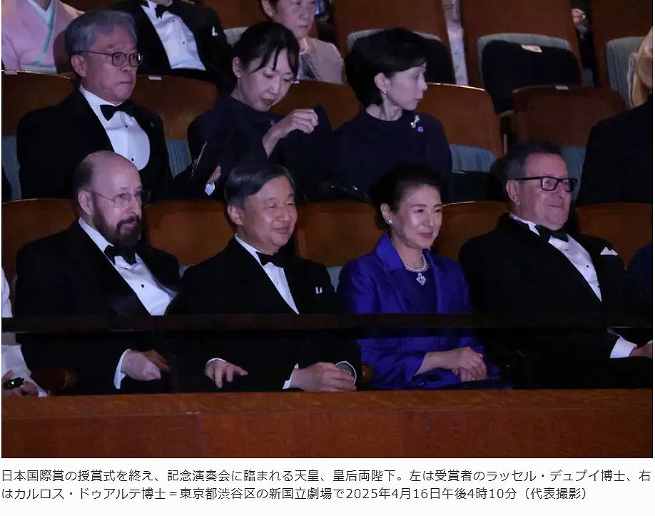 天皇陛下はお言葉で、多様化する地球規模の課題について「より広い見識の下、様々な分野の叡智を結集し、互いに力を合わせることにより、希望に満ちた未来が築かれていくことを願っています」と述べられた。両陛下は受賞者らのあいさつに熱心に耳を傾け、拍手を送られていた。記事出典 産経新聞https://www.sankei.com/article/20250416-6U753EYX65POXEKZNYBWMBMCIY/