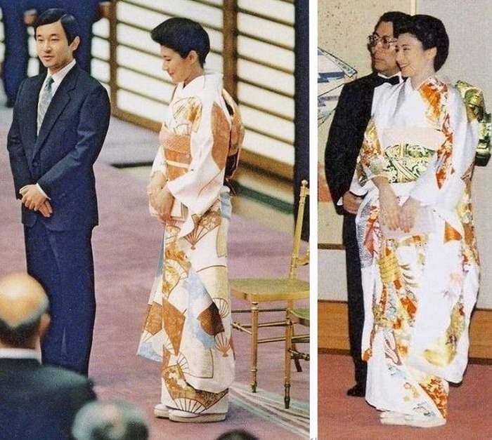 雅子さまの着物はクリーム色に藤の花でした。高価な着物なのでしょうが私の好みではありません。雅子さまはもっと格調高い訪問着をお持ちです。例えば即位式の一連の儀式で着られた着物はかなり高価で良い着物でした。