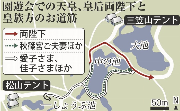 昭和から続く園遊会は今回、新たな「おもてなし」の形に変化する。両陛下を先頭に皇室が一列になり、同じルートを進むのをやめ、両陛下、秋篠宮ご夫妻ら、愛子さまと佳子さまら、と三つにルートを分け宮内庁幹部は「招待者の皆さまに、園遊会をもっと楽しんでいただくため」と変更の理由を説明する。昭和から続く皇室全員が一列になる方法では、ルート沿いに招待者が集中する。場所取りのための待ち時間も長くなり、春でも気温が上がる近年は体調を崩す人もいた。
