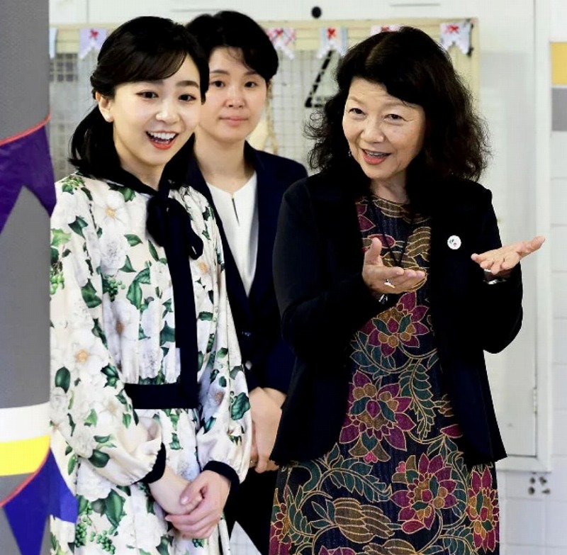 お年寄りに寄り添う時の真子様、日本語私立学校ご訪問の時もそのどちらにも