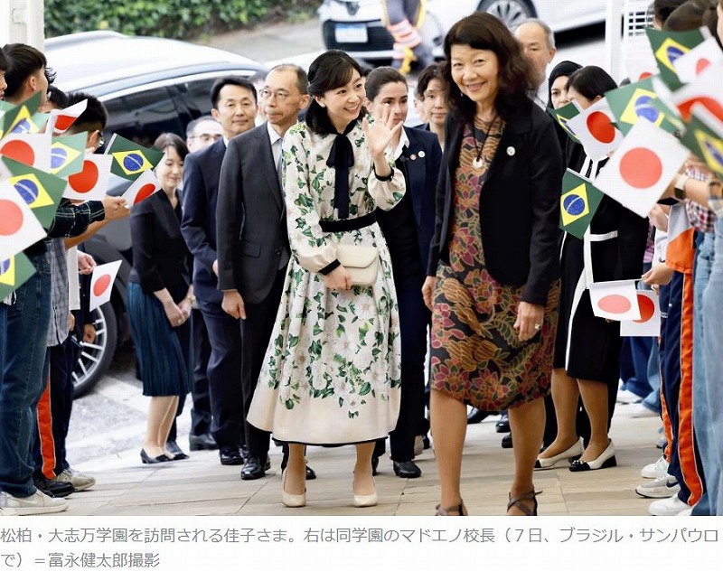 【サンパウロ=坂場香織】ブラジルを訪問中の秋篠宮家の次女佳子さまは7日午後(日本時間8日未明)、日本語教育に取り組むサンパウロの私立学校「 松柏しょうはく ・ 大志万おおしまん 学園」を訪れ、生徒らと交流された。