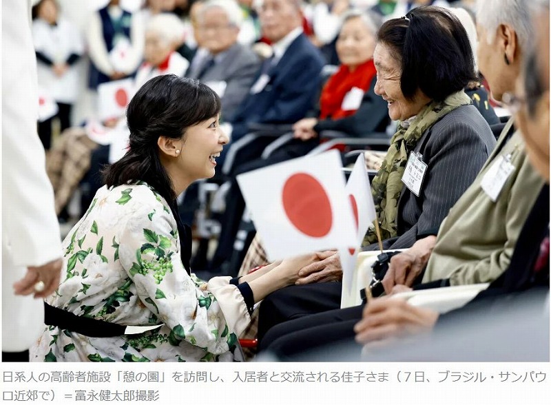 記事・画像出典 読売新聞 https://www.yomiuri.co.jp/koushitsu/20250608-OYT1T50029/【サンパウロ=吉沢智美】ブラジルを公式訪問中の秋篠宮ご夫妻の次女、佳子さまは7日午後、サンパウロ近郊にある老人ホーム「憩の園」を訪問された。憩の園は日系移民の高齢者らが入居し、在位中の上皇さまと上皇后さまや、秋篠宮ご夫妻も足を運ばれたことがある。