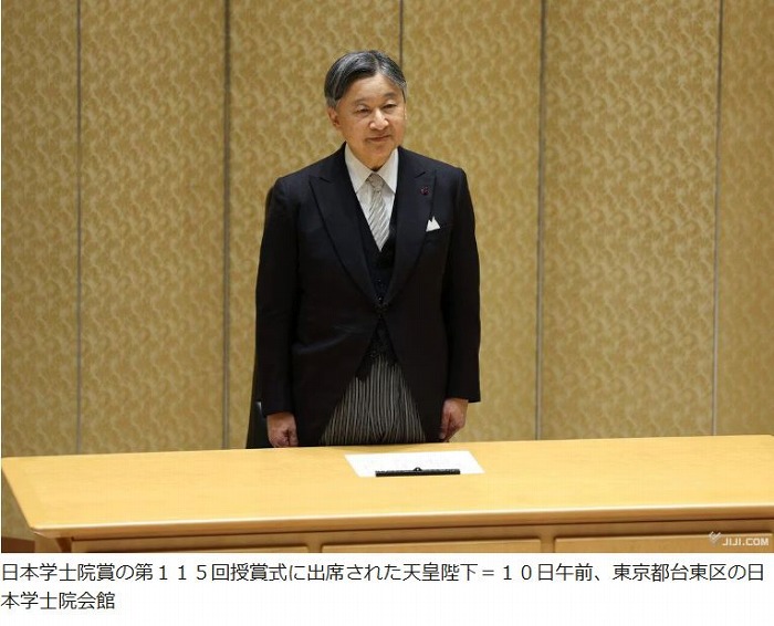 天皇陛下、日本学士院授賞式に 6年ぶり茶会、愛子さまも出席